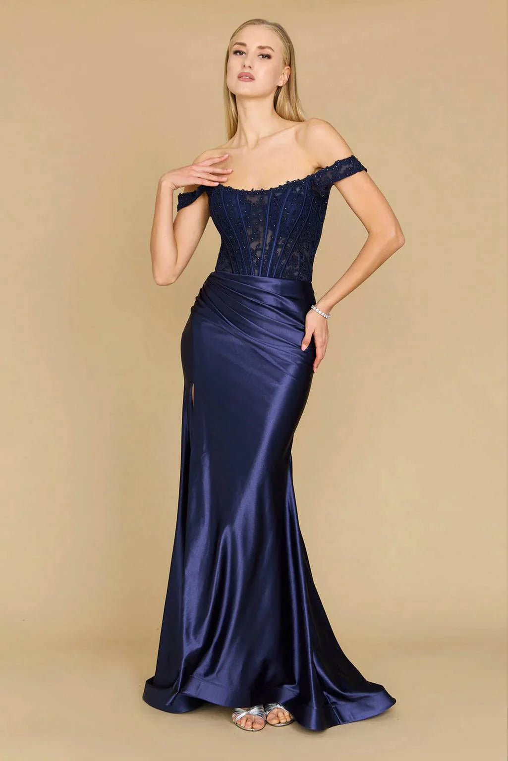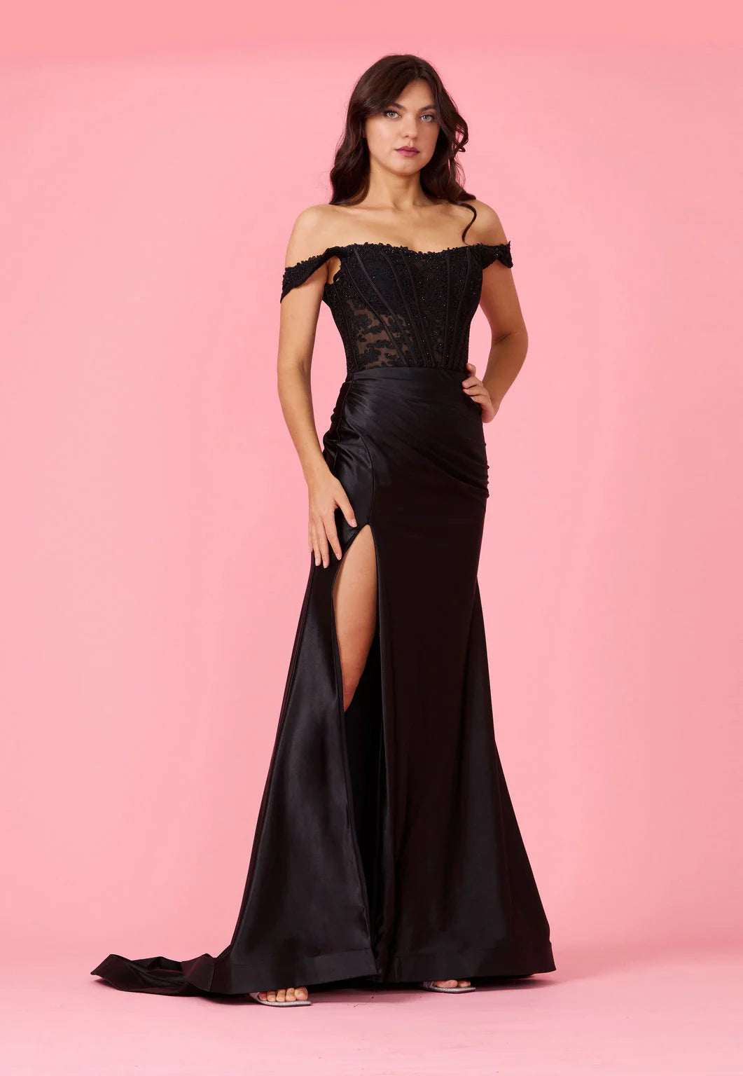 Introducing the Aileen dress, a stunning long corset mermaid gown that will make you the center of attention. With its elegant pleated accents and off-shoulder style, this dress is perfect for prom or any special occasion. Available in a range of colours and sizes, it's designed to turn heads and steal hearts. Elevate your style with Aileen.